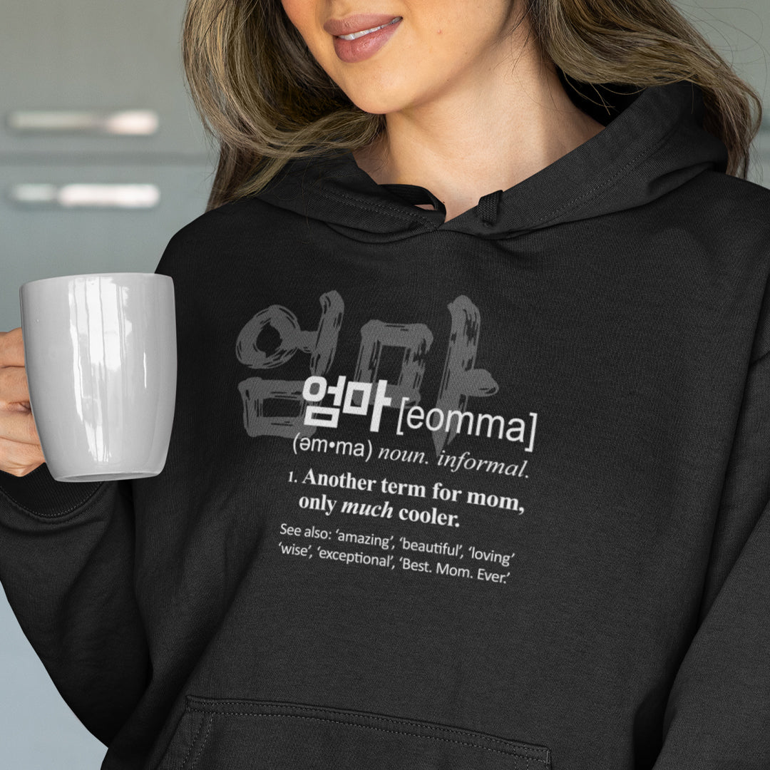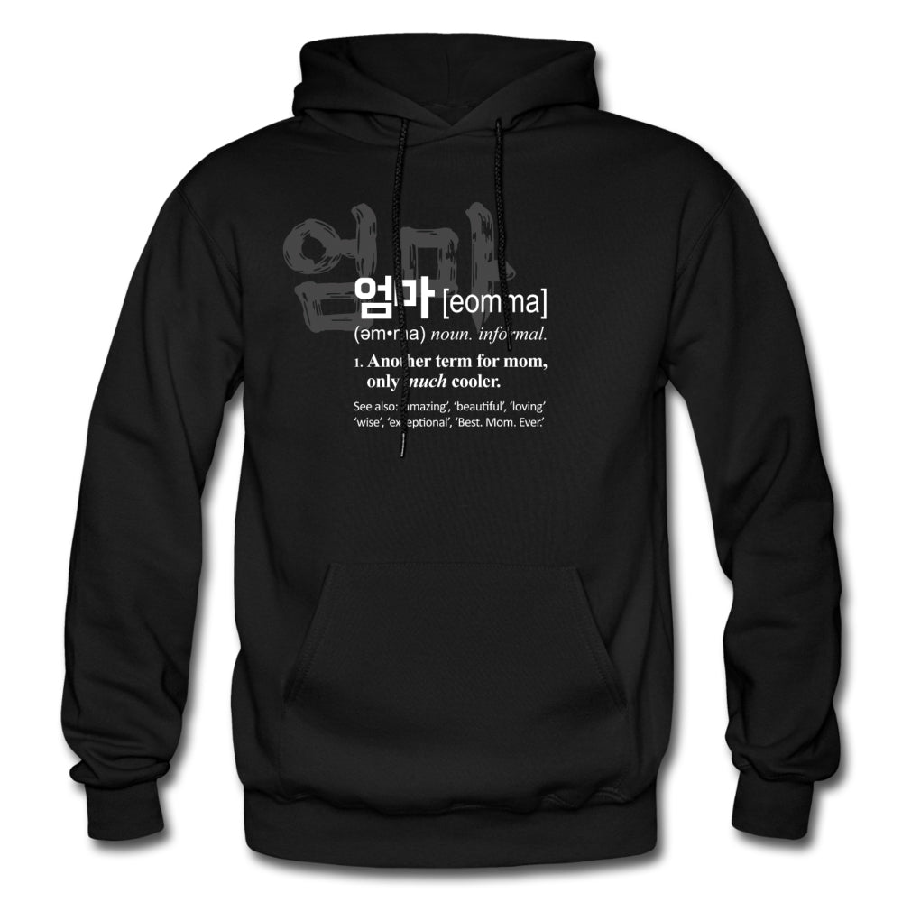 This exclusive and original Hangul 엄마 Definition Of Eomma hoodie is sure to brighten any eomma's day! It's a great gift for mom on their birthday, Christmas, or Mother's Day! A hilarious gift for only the coolest of mothers. If you've got the Best. Mom. Ever., this hoodie is sure to let your eomma know how much you appreciate her!