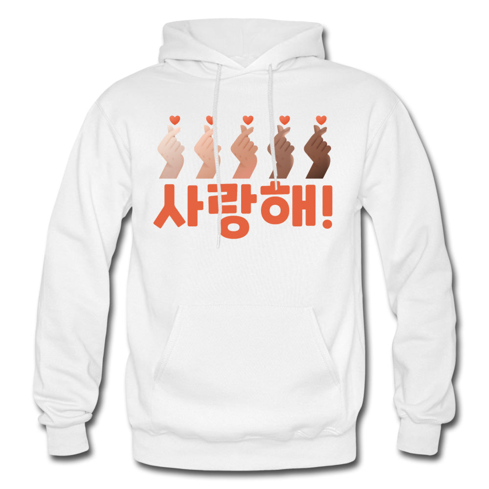 Unity Finger Hearts with Hangul 사랑해! Saranghae! I Love You! Unisex Hoodie