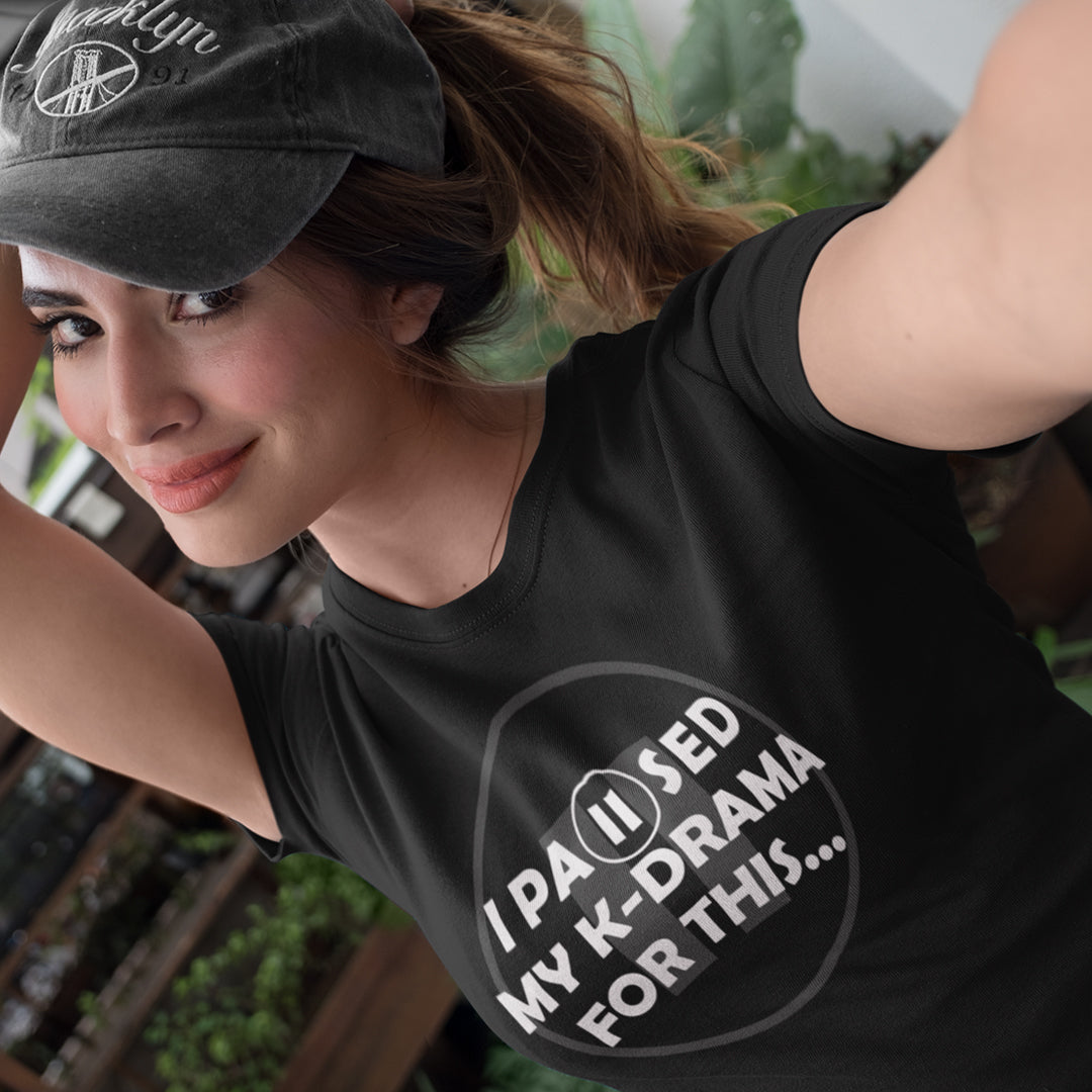 Original and exclusive design featuring the words I PAUSED MY K-DRAMA FOR THIS... Any K-Drama fan is sure to relate to this humorous T-Shirt!