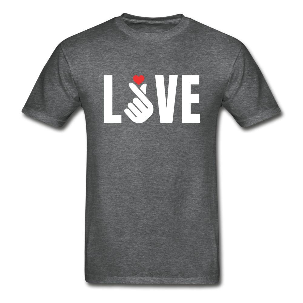 LOVE design featuring finger heart gesture commonly seen in K-dramas and shared by popular Korean Pop (K-Pop) idols. Any K-culture fan is sure to appreciate this fashionable T-shirt!