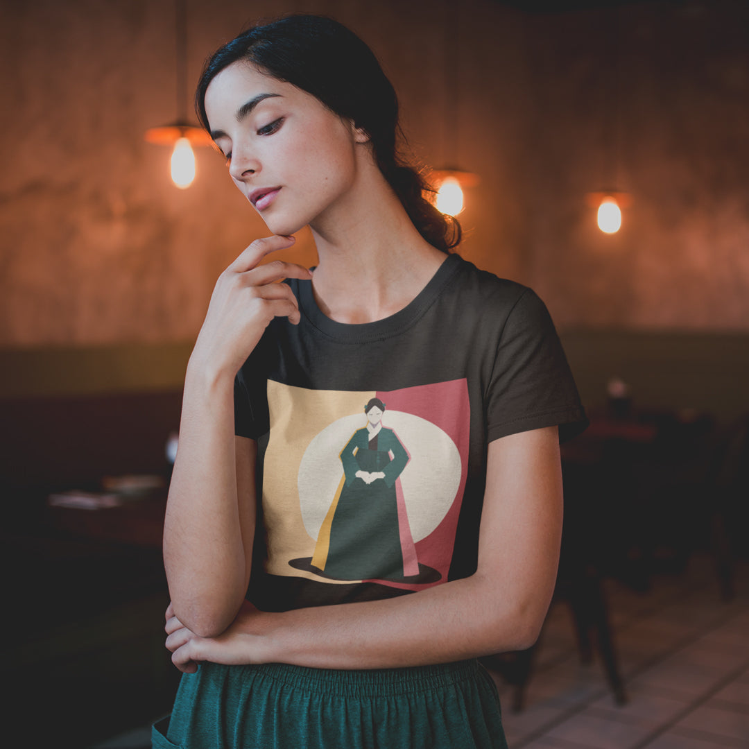 This lovely T-shirt features an abstract image of a woman wearing a green traditional Korean hanbok. Any Korean culture fan is sure to love this piece!